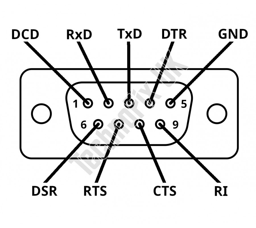 • All lines connected - DCD, RxD, TxD, DTR, GND, DSR, RTS, CTS, RI.